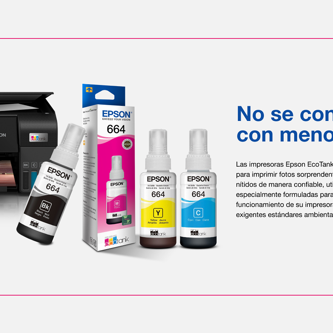 Las botellas de tinta de color cian T664 son compatibles con impresoras Epson de la línea Ecotank. Con las tintas de calidad original Epson no solo obtienes un alto rendimiento, sino que también conservas los dos años de garantía para tus equipos de impresión Epson. Impresoras compatibles: L120, L310, L380, L395, L495, L575, L606, L655, L656, L1300 y L1455.